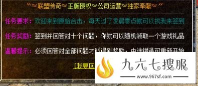 7:每日签到:在盟重340,343每日签到处回答十个问题,获取精美礼品。