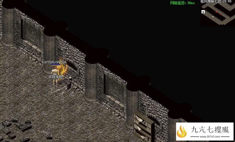 首先我们来到祖玛七层大厅,其实这里是不会刷新任何怪物的,这里只不过是玩家休息的中转区域!于是我们直接从这里到祖玛七层一,我们从右上角的小地图中的红点可以看出,这里已经开始刷怪了,继续往前跑吧!看看究竟是什么怪!