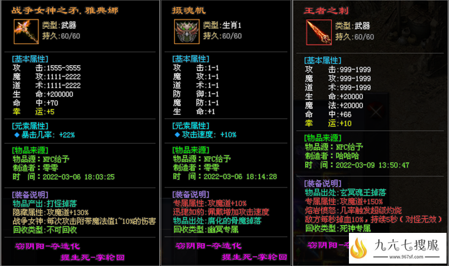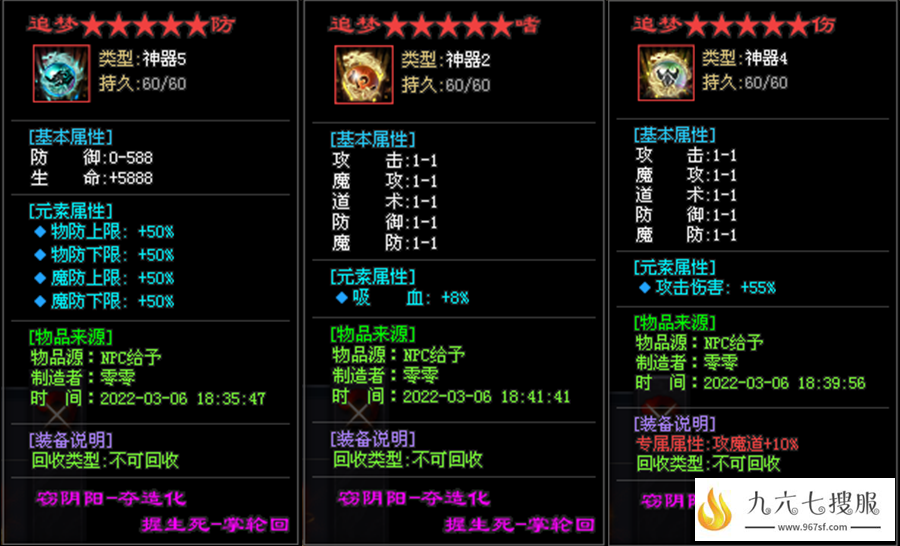 追梦装备:不同于其他专属服装备单一化,每个大陆都有几个属性极致提升的【追梦装备】。